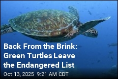 It's a big victory for green sea turtles after decades of conservation work: They're no longer considered endangered, reports the BBC. The shift is noted in the updated "Red List" of the International Union for the Conservation of Nature. Once heavily hunted for their meat, eggs, and shells, green turtle populations had been listed as endangered since the 1980s. Efforts like safeguarding nesting sites, protecting eggs, releasing hatchlings, and introducing fishing practices that reduce accidental turtle capture have paid off, according to the new data.