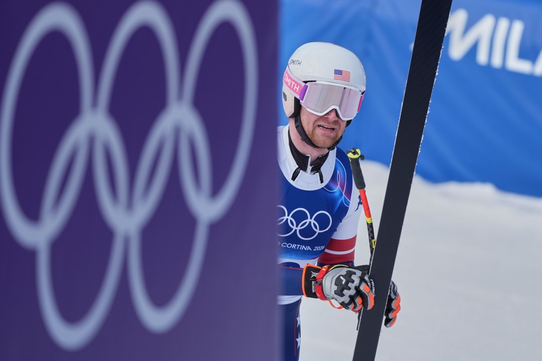 United States' Ryan Cochran Siegle is seen in the finish area of an alpine ski men's downhill race at the 2026 Winter Olympics in Bormio, Italy, on Saturday.   (AP Photo/Rebecca Blackwell)